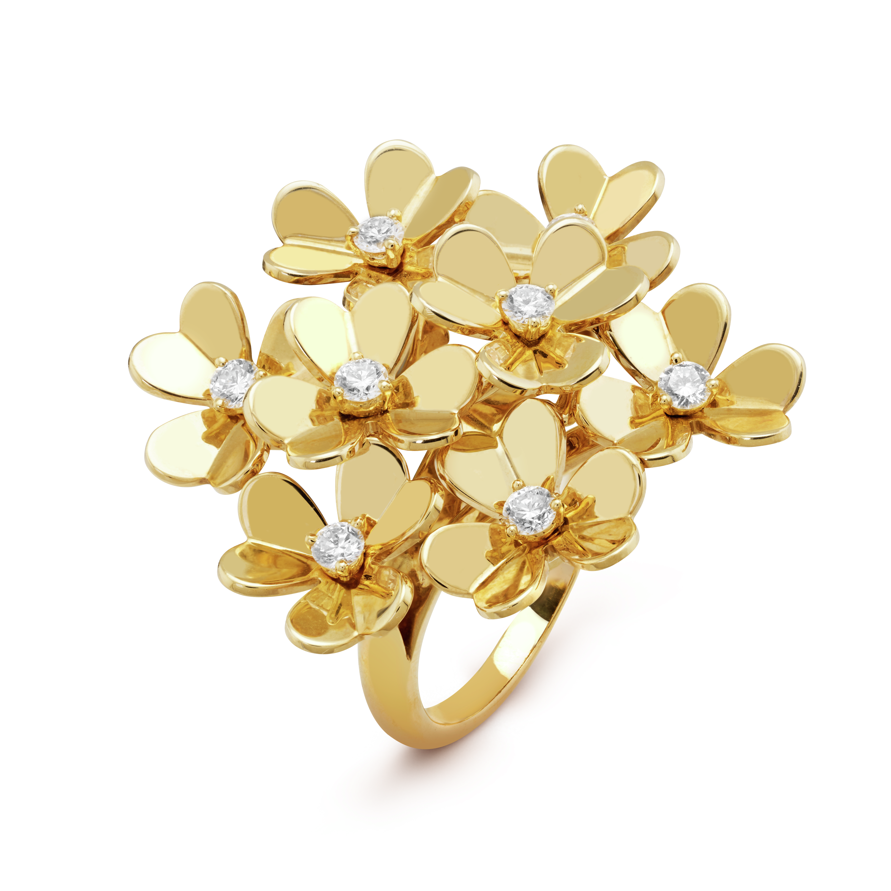 Frivole ring, 8 flowers, 18K yellow gold, diamonds