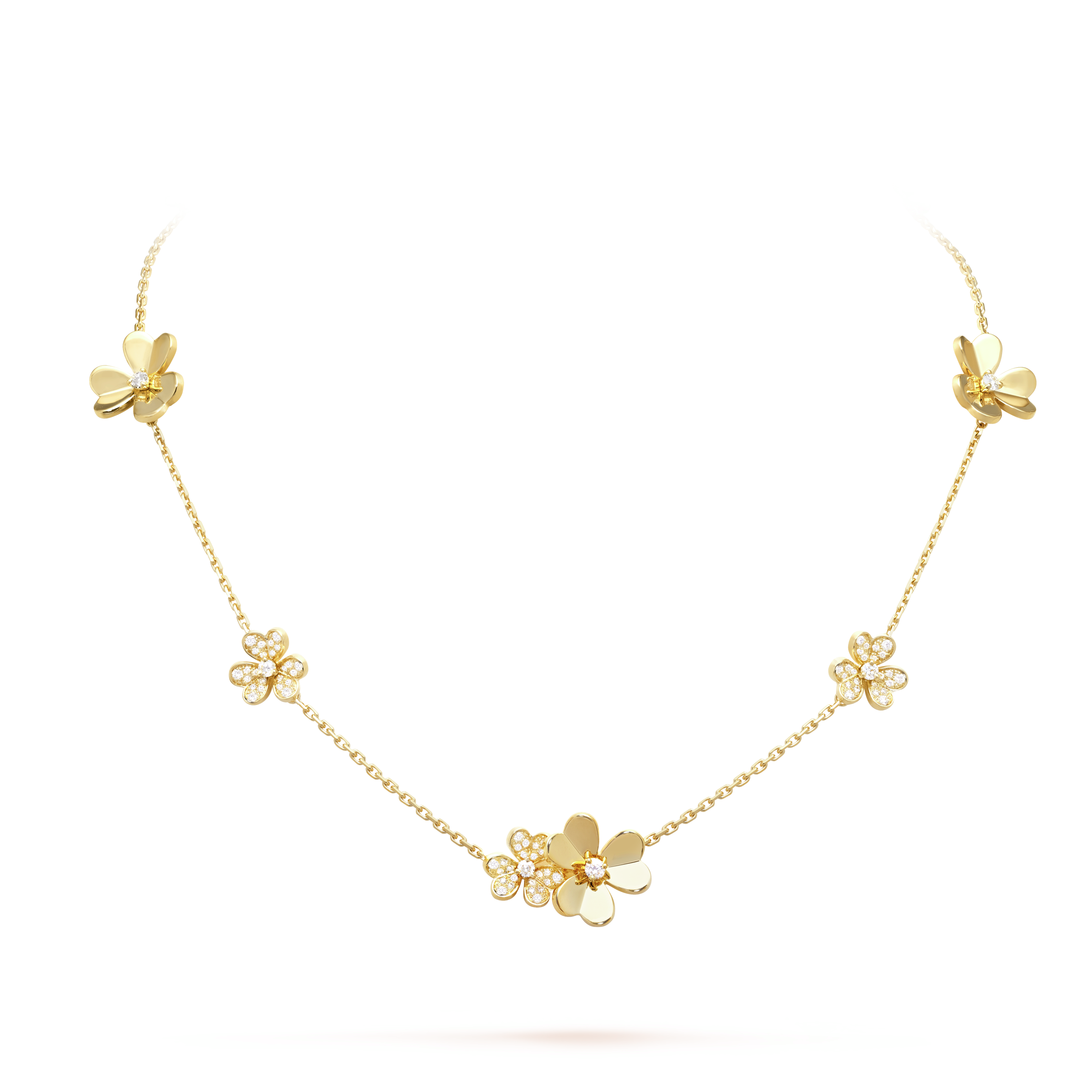 Frivole necklace, 9 flowers, 18K yellow gold, diamonds